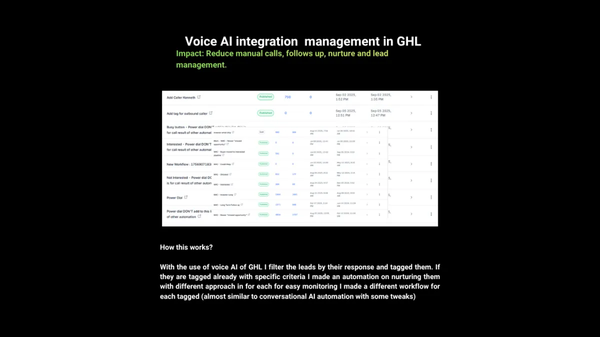 Building and training conversational and voice AI agents to manage, nurture and follow-up your leads for both call and SMS through GHL AI agents and creating Knowledge base for much more human like responses.